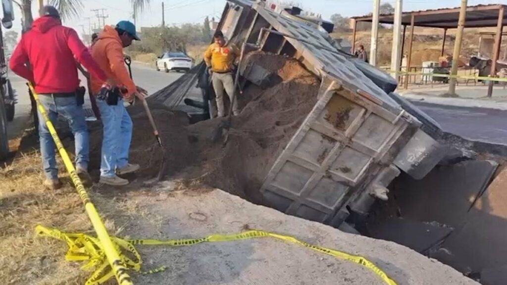 El accidente del camión cargado de arena ocurrió de manera sorpresiva, cuando el pavimento se hundió repentinamente sobre el boulevard. El conductor fue auxiliado por transeúntes que se detuvieron al percatarse del socavón, mientras que los testigos llamaron a las autoridades para solicitar apoyo. Al lugar llegaron unidades de emergencia y rescatistas. De acuerdo con los informes oficiales, el hombre presentó lesiones leves que no representaron riesgo para su vida.