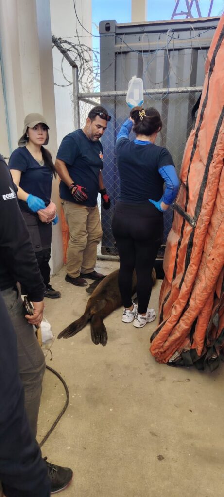 La Marina informó que, con el apoyo de un inspector federal de pesca, personal de Profepa y especialistas del Marine Wildlife Rescue Center y Cabo Dolphins, el lobo marino fue sometido a una valoración médica especializada.