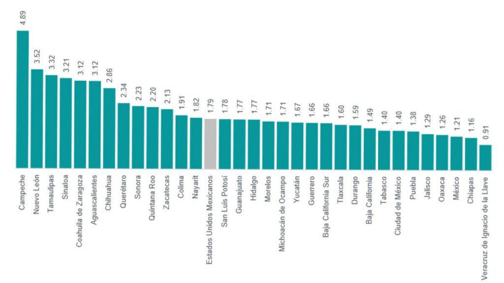 - Campeche, con 4.9