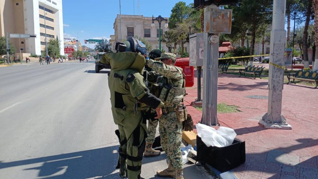 Un equipo del Ejército Mexicano, especializado en detección y desactivación de explosivos, ingresó primero al Palacio de Gobierno con apoyo de binomios caninos. Tras descartar la presencia de artefactos, los elementos se trasladaron a la Secretaría de Hacienda para efectuar la misma revisión.