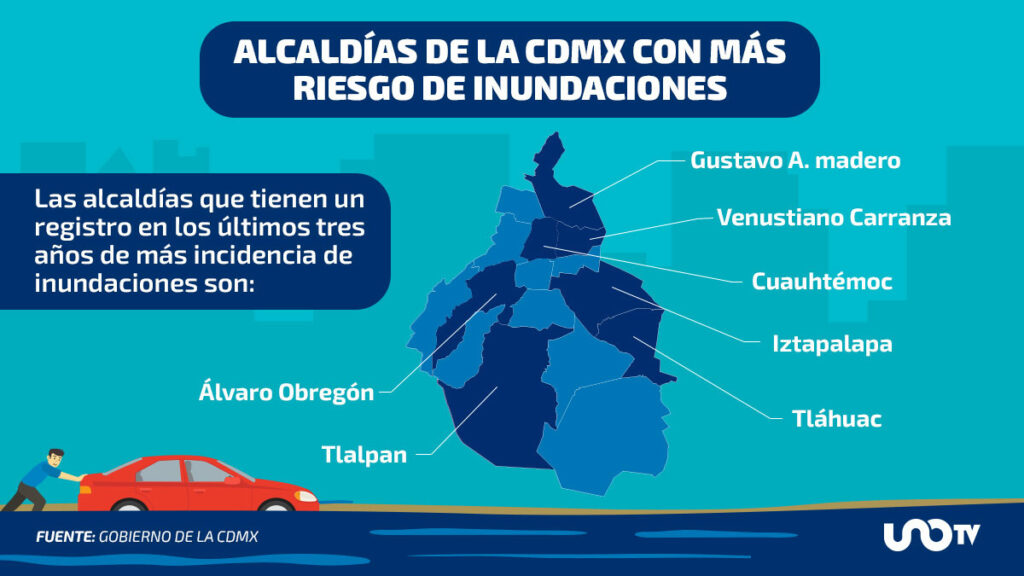 Esparza Hernández señaló que, en los últimos tres años de más incidencia, las alcaldías donde hay más encharcamientos e inundaciones en CDMX son: