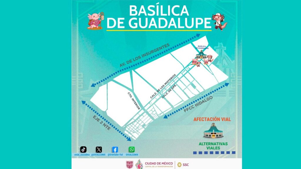 Durante este periodo, la SSC difundirá cierres y rutas alternas en las redes sociales del Centro de Orientación Vial (OVIAL), de la Unidad de Contacto del Secretario (UCS) y de la propia Secretaría, por lo que pide a la ciudadanía mantenerse informada antes de desplazarse hacia la zona del Tepeyac.