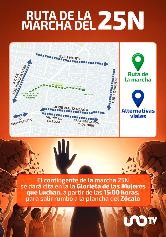 La marcha del 25N pasará en gran parte por el primer cuadro de la Ciudad de México, por lo que se espera que haya afectaciones en las siguientes avenidas: