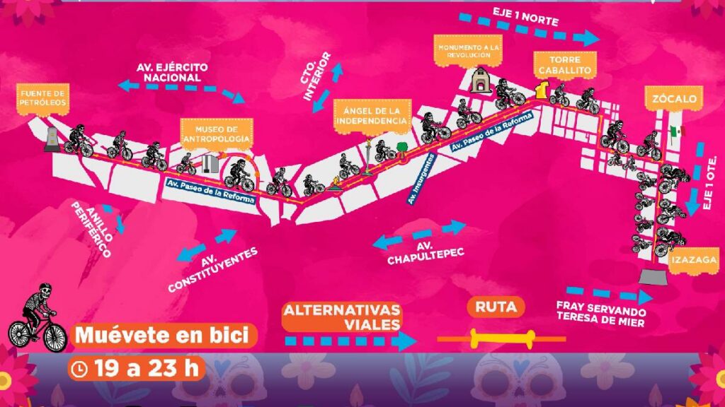 - Ojo: si llevas tu bicicleta, utiliza el primer o el último vagón para que el viaje sea más cómodo. Así que ya lo sabes, habrá muchas actividades en la CDMX previas al 2 de noviembre.