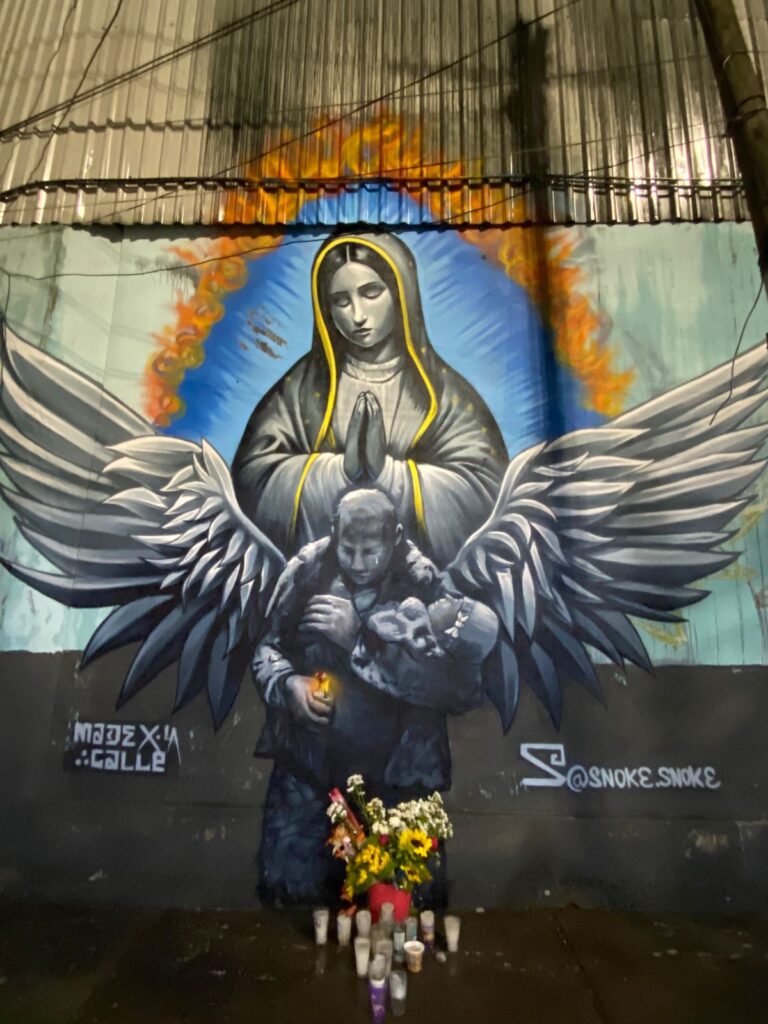El silencio que piden las familias contrasta con el ruido constante de los tráileres que atraviesan el puente. La vida sigue, pero el dolor permanece, pintado en los muros y en la memoria de quienes lo vivieron.