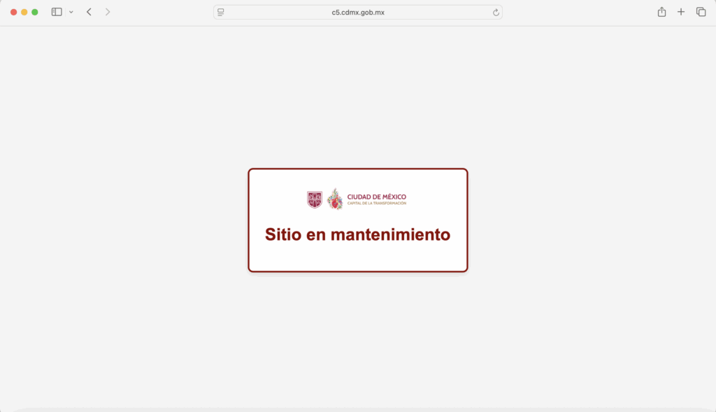 Mientras que, alrededor de las 00:00 horas, la página fue actualizada para mostrar un gráfico con la leyenda “Sitio en mantenimiento” y la imagen institucional del Gobierno de la Ciudad de México. Sin embargo, la actualización tardó alrededor de dos horas en aparecer, y sin alguna referencia a través de sus cuentas en redes sociales del C5 ni de la SSC.