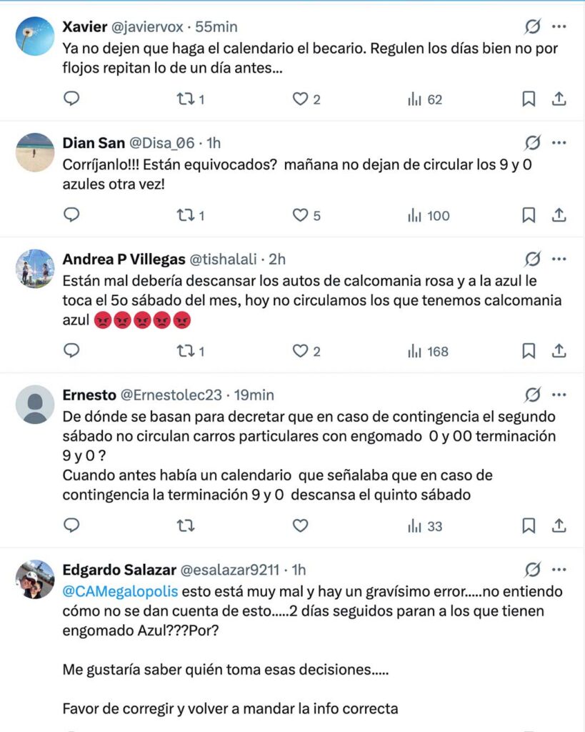 En redes sociales, muchos cuestionan por qué nuevamente deben descansar los autos con engomado azul, e incluso consideran que se trata de un error de las autoridades capitalinas.