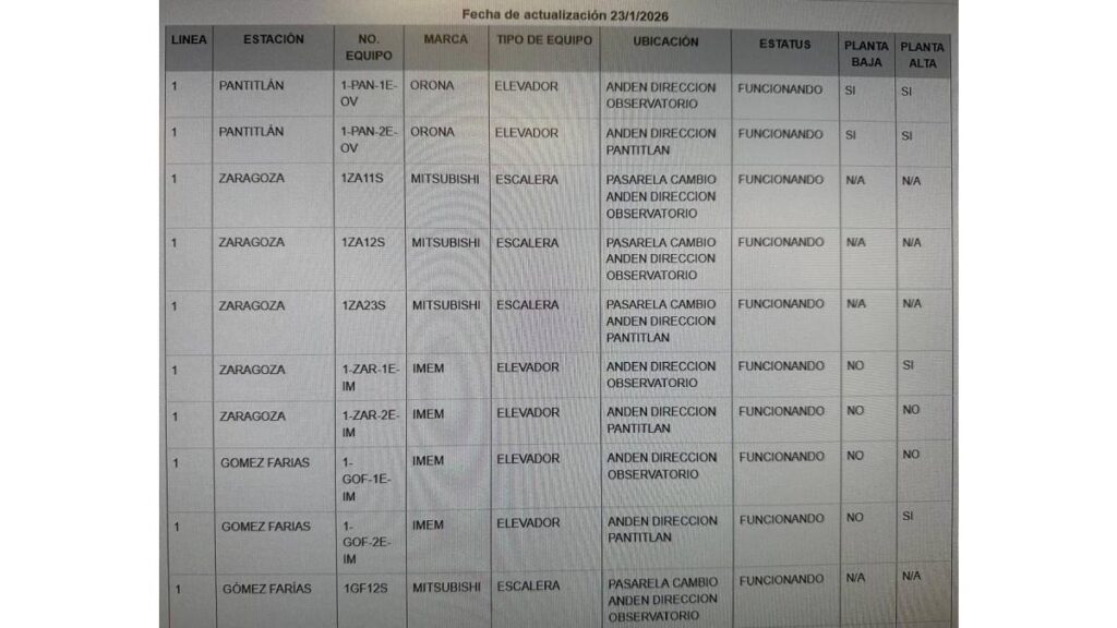 La plataforma oficial del Metro especifica si estos dispositivos están funcionando o fuera de servicio, lo que ayuda a los pasajeros a saber de antemano qué equipos pueden utilizar en sus rutas cotidianas por:
