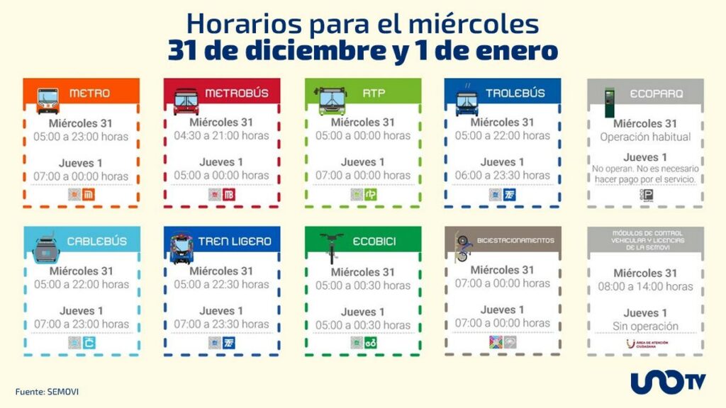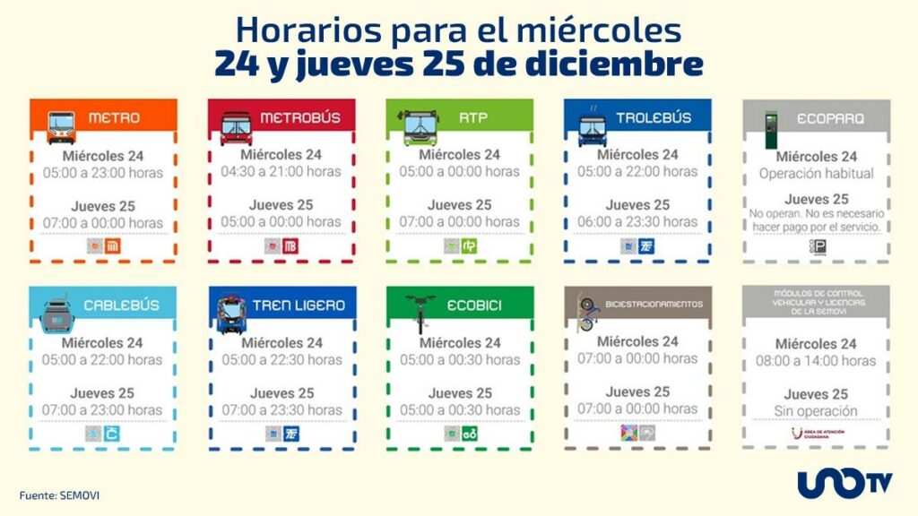 En la Ciudad de México (CDMX), por las fiestas decembrinas, el horario del transporte público se modificará. La medida aplicará para el 24, 25 y 31 de diciembre, así como para el 1 de enero.