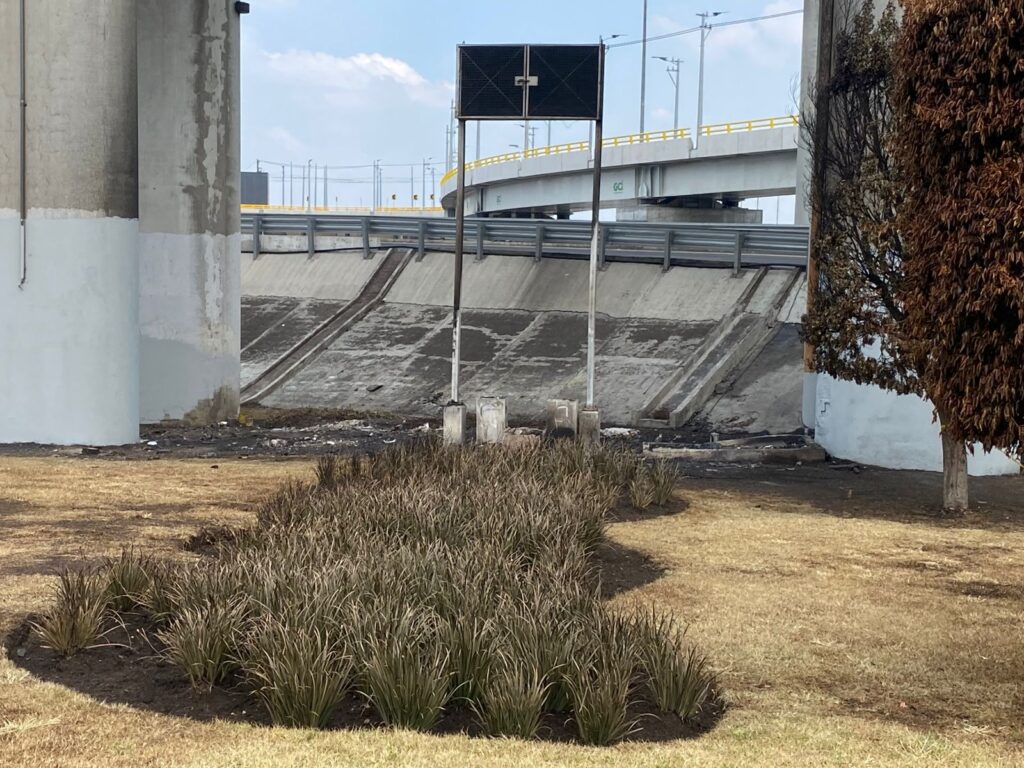 - Desde hace meses, un campamento de ocho jóvenes en situación vulnerable se instaló en el camellón frente al puente; hoy una mancha negra, árboles quemados y una cinta de precaución son el recuerdo de su hogar.