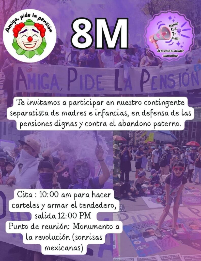 Por ejemplo, la colectiva “Amiga, pide la pensión” señala en su convocatoria que se reunirán en este punto capitalino de las 10:00 a las 12:00 horas para preparar carteles y armar un tendedero. Justo al mediodía saldrán con dirección al Zócalo de la CDMX.