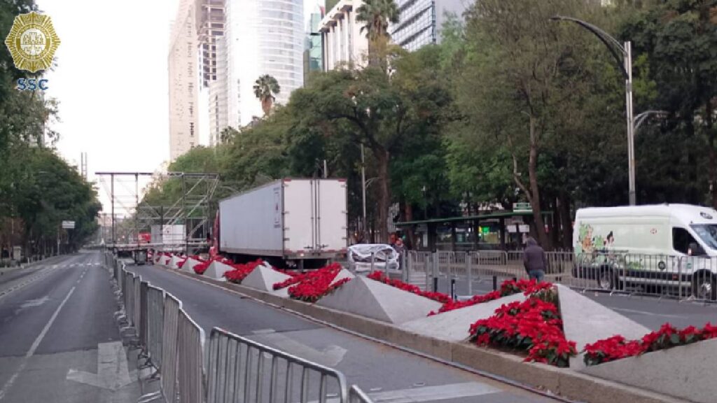 Reforma con cortes viales por montaje de fin de año en el Ángel