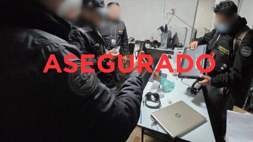 Con una orden judicial de cateo, fuerzas federales y estatales ingresaron al inmueble ubicado en la calle Venustiano Carranza, donde hallaron equipos tecnológicos y documentación que contenía información bancaria, presuntamente utilizada para cometer fraudes a cuentahabientes.