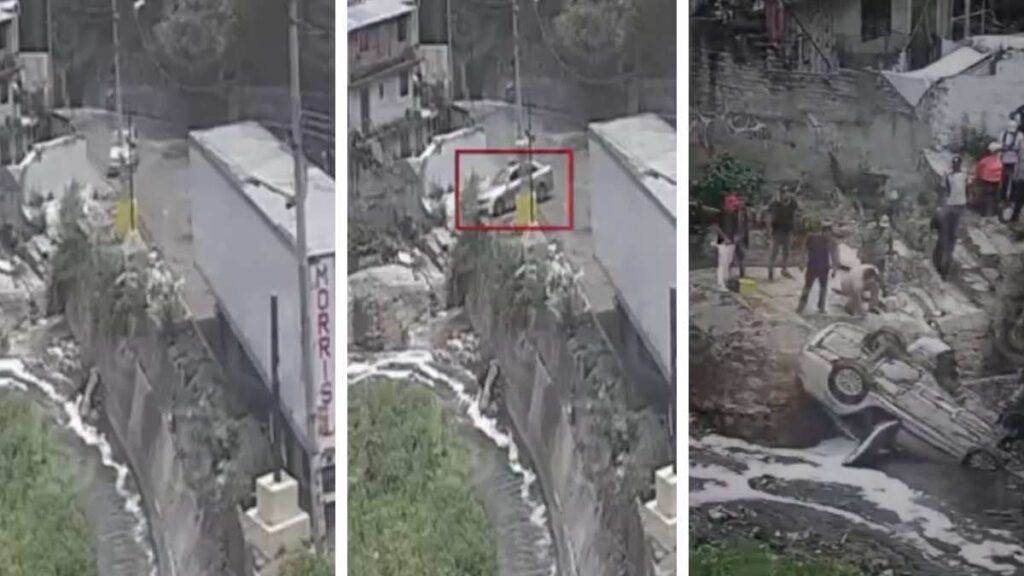 De acuerdo con la Secretaría de Seguridad del Estado de México, a través del sistema C5, cámaras captaron el momento en que el coche brincó la banqueta y cayó al Río Hondo, provocando la movilización de unidades de emergencia en la zona.