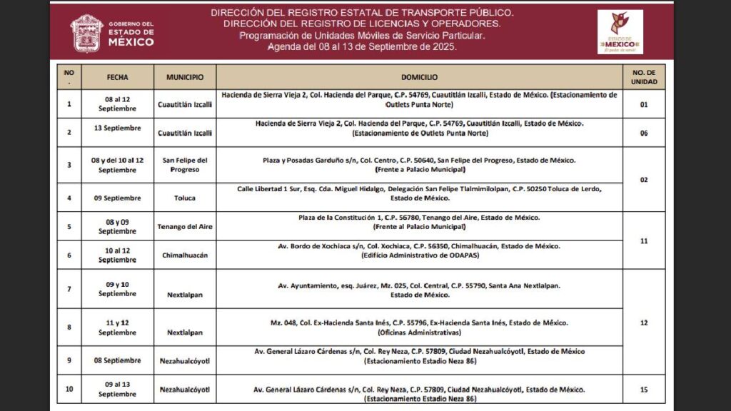 Unidades móviles de Licencia Edomex: ubicaciones del 8 al 13 de septiembre