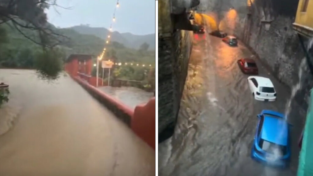 Las fuertes lluvias registradas este lunes en Guanajuato capital provocaron el desbordamiento de la presa de San Renovato, causando inundaciones en varias calles del centro histórico, incluido el Jardín Unión y la calle Subterránea, de acuerdo con autoridades municipales.