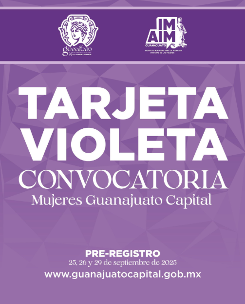 El Instituto Municipal para la Atención Integral de las Mujeres (IMAIM) anunció la reapertura del registro para la Tarjeta Violeta en Guanajuato capital, programa de apoyo económico que entregará 2 mil pesos en una sola exhibición a mujeres en situación de vulnerabilidad.