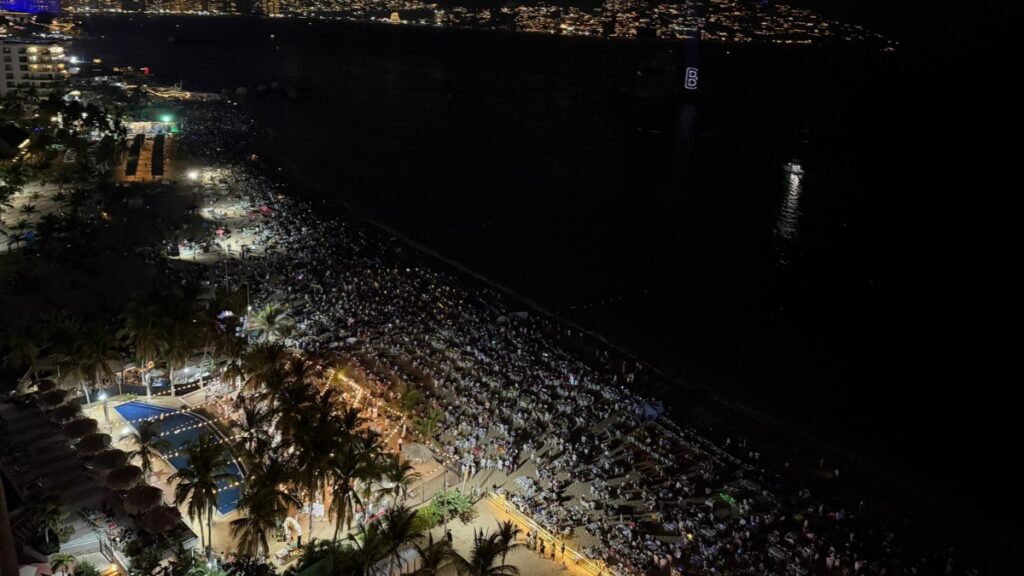 En la medianoche del miércoles y primeros minutos de este jueves, miles de turistas y residentes se congregaron en playas, banquetas y plazas públicas para presenciar una gala que combinó tradición y modernidad.
