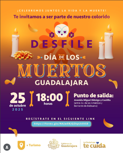 El tradicional Desfile de Día de Muertos en Guadalajara ya tiene fecha confirmada. Este año se realizará el sábado 25 de octubre de 2025 a las 6:00 de la tarde. El recorrido comenzará en Avenida Miguel Hidalgo y Costilla, entre Avenida de las Américas y Bernardo de Balbuena.