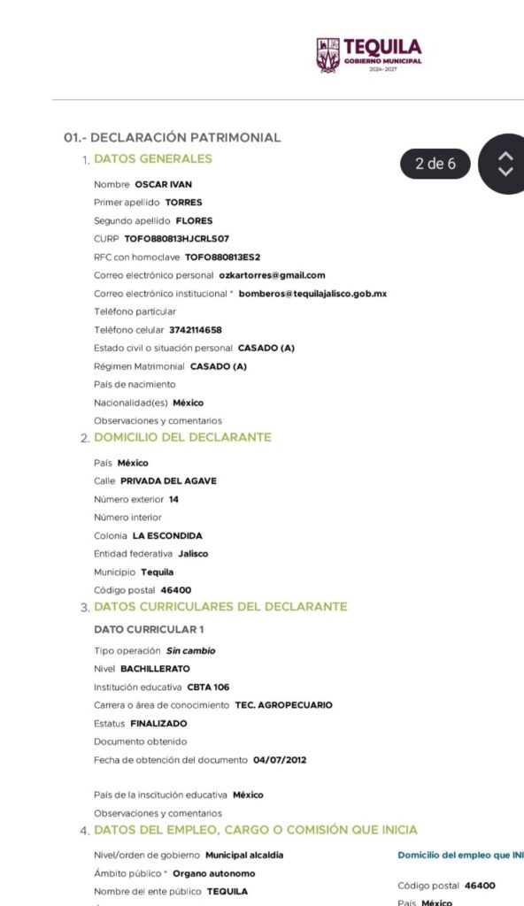 De acuerdo con la documentación revisada, Óscar Iván Torres Flores fue designado como titular de la Unidad Municipal de Protección Civil y Bomberos de Tequila sin cumplir con los requisitos de escolaridad que establece la normativa más reciente, lo que abre cuestionamientos sobre los criterios de selección y la supervisión interna en el Ayuntamiento.