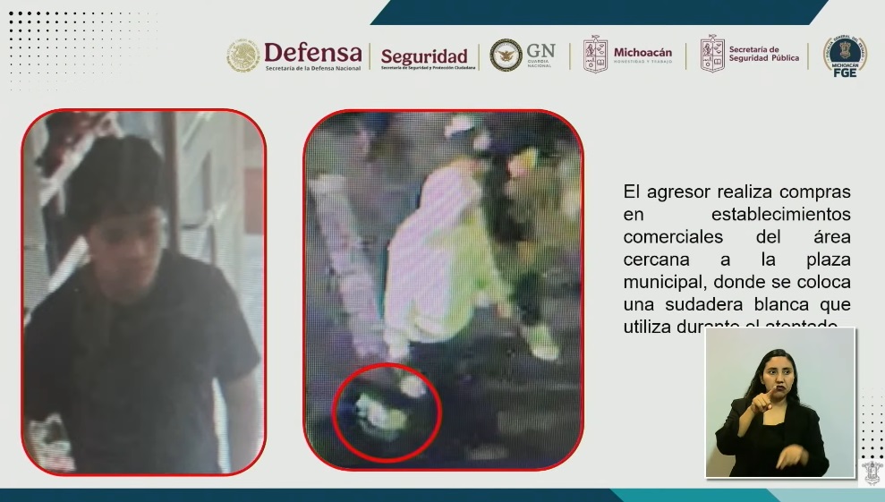Mientras tanto, autoridades presentaron videos del ataque en contra, así como una imagen y el retrato hablado del autor material del atentado.