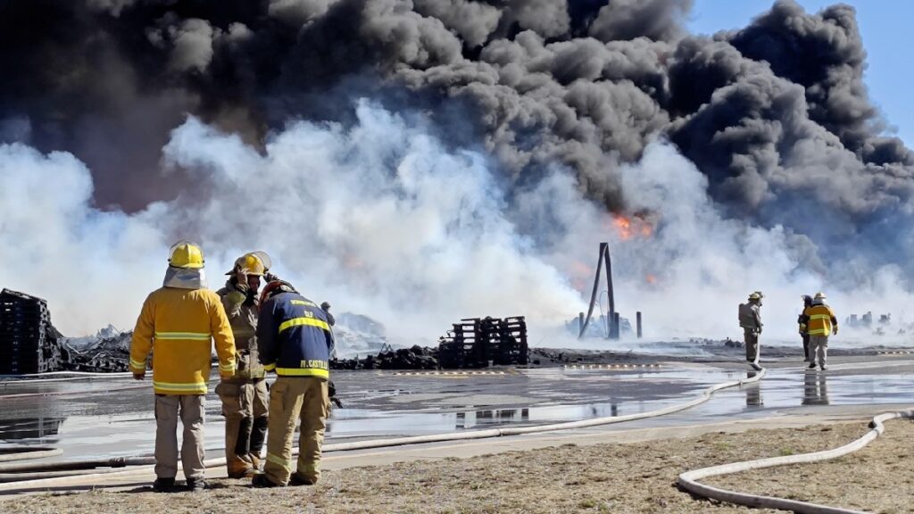 Las labores de emergencia se mantienen en la zona, donde brigadas trabajan en la sofocación del fuego y en evitar que se propague a otras instalaciones cercanas.