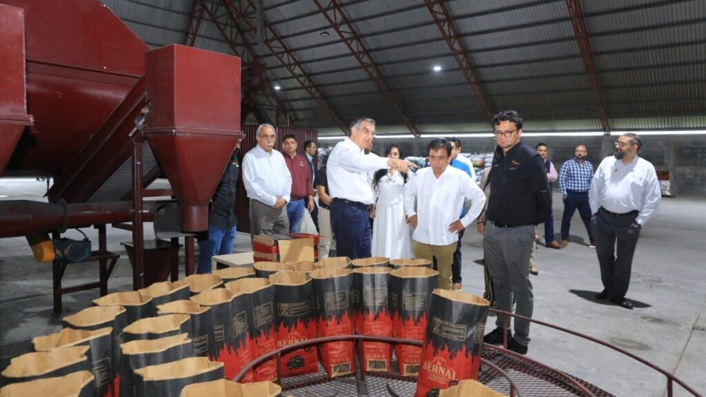 Como parte de la agenda de trabajo, el gobernador y los empresarios realizaron un recorrido por la planta empacadora de carbón El Bernal, que ya se encuentra lista para iniciar operaciones con una producción inicial de 200 toneladas mensuales, con la proyección de alcanzar hasta 600 toneladas en su máxima capacidad operativa.