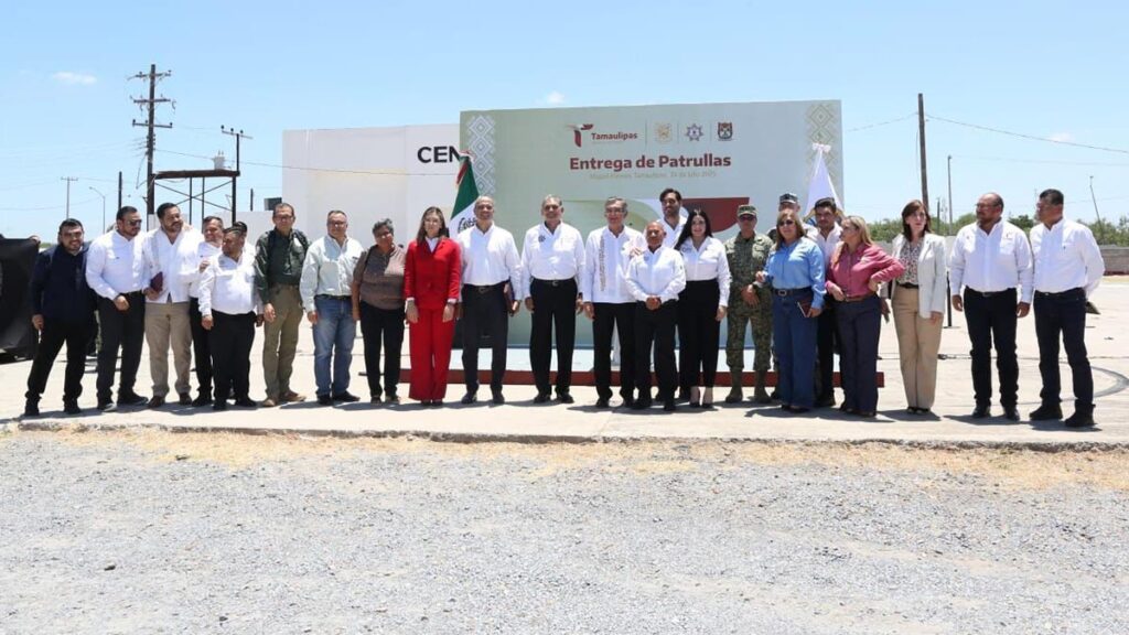 El gobernador Américo Villarreal entregó este jueves 63 patrullas nuevas en el municipio de Miguel Alemán, Tamaulipas. Estas unidades forman parte de un total de 330 vehículos que serán distribuidos en todo el estado para reforzar el patrullaje y las tareas de vigilancia en la zona ribereña. Además, el mandatario dio el banderazo de salida a la construcción de las primeras dos Estaciones Seguras, de un total de 15 proyectadas para zonas estratégicas en la frontera.
