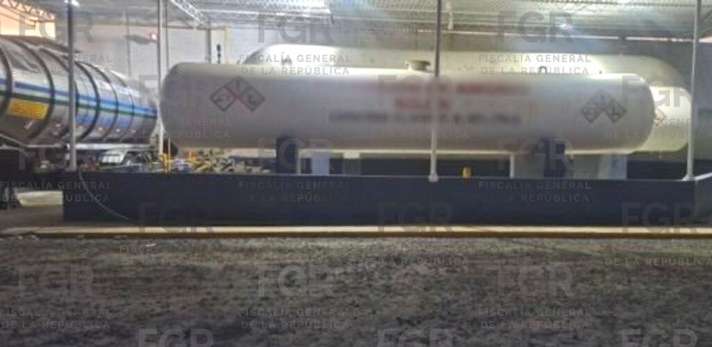 En el primer inmueble cateado, las autoridades aseguraron 52 mil 200 litros de hidrocarburo, además de 25 tractocamiones, un camión, cuatro camionetas, 36 semirremolques tipo tanque, seis plataformas con contenedor, 10 contenedores tipo Fractank-IBC y 11 tanques fijos de almacenamiento.