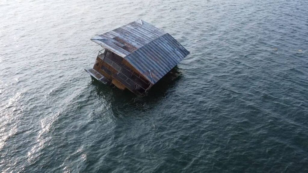 La estructura, perteneciente al establecimiento “El Atracadero”, se hizo viral en redes sociales por los videos que mostraban su insólito recorrido por el Golfo de México.