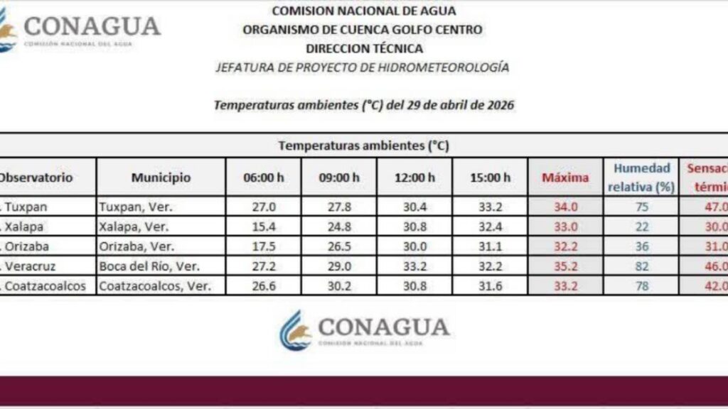 Han recortado horario escolar en escuela Cbtis 85. Sacan a los estudiantes con dos horas de anticipación. La Comisión Nacional del Agua registró el sexto día consecutivo de temperatura alta a muy alta en Veracruz. Tuxpan llegó a sensación térmica de 47 grados C, Boca del Río 46 y Coatzacoalcos 42.