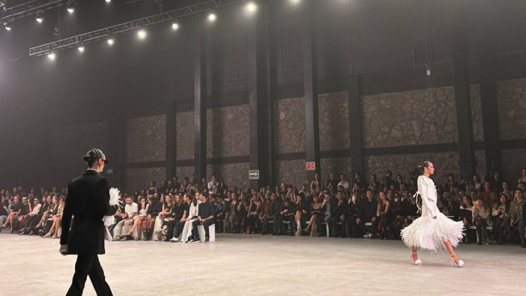 Este desfile fue uno de los más esperados de la jornada y tuvo lleno total de personas interesadas en ver la moda del diseñador nacido en Guadalajara, quien reafirmó la conexión entre la moda y la innovación tecnológica.