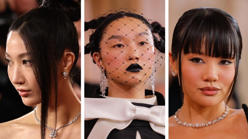 La cantante coreana llegó con un sorprendente vestido negro con trasparencias.