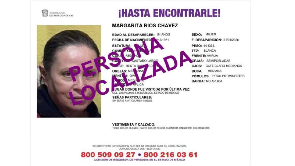 Localizan a Margarita Ríos, desaparecida en Ixtapaluca