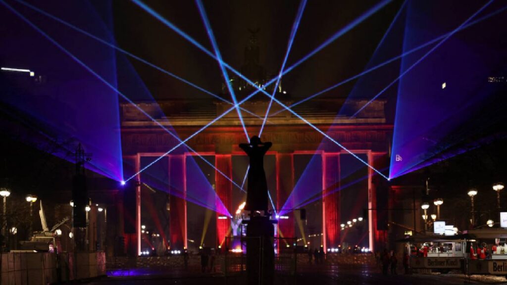 La Puerta de Bradenburg se iluminó antes de las celebraciones de Nochevieja en Berlín, Alemania. Miles de personas se reunieron en la zona para participar en la tradicional celebración, que incluyó música, actuaciones y el espectáculo pirotécnico que es considerado uno de los más largos de Europa.