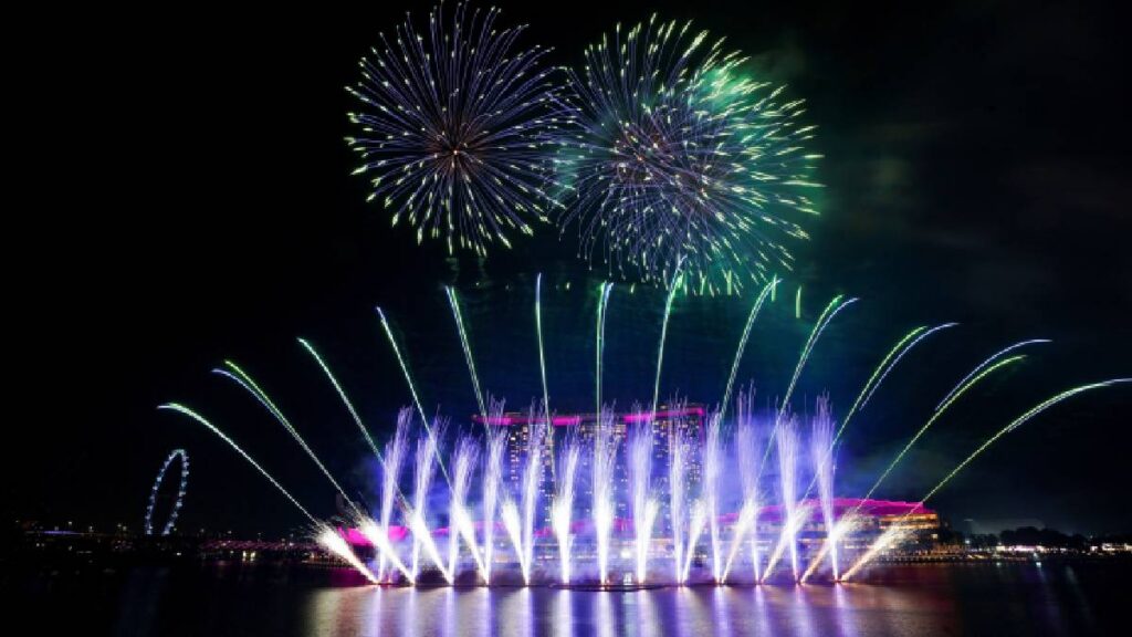 Fuegos artificiales explotan sobre Marina Bay durante las celebraciones de Año Nuevo en Singapur. Las familias admiran el espectáculo para recibir al 2026 con la esperanza de que sea un gran año para todos.