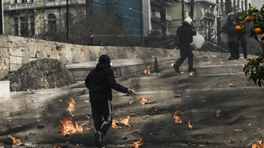 Enfrentamientos durante marcha por accidente de tren en Grecia dejan 5 heridos