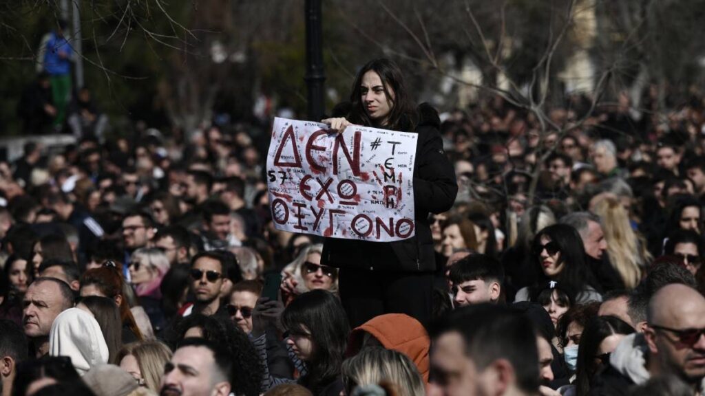 “Queremos que se haga justicia”, clamó un manifestante en Atenas, Dimitris Korovesis, de 16 años, en un momento en el que los griegos exigen respuestas sobre las causas exactas de esta colisión frontal entre dos trenes el 28 de febrero de 2023.
