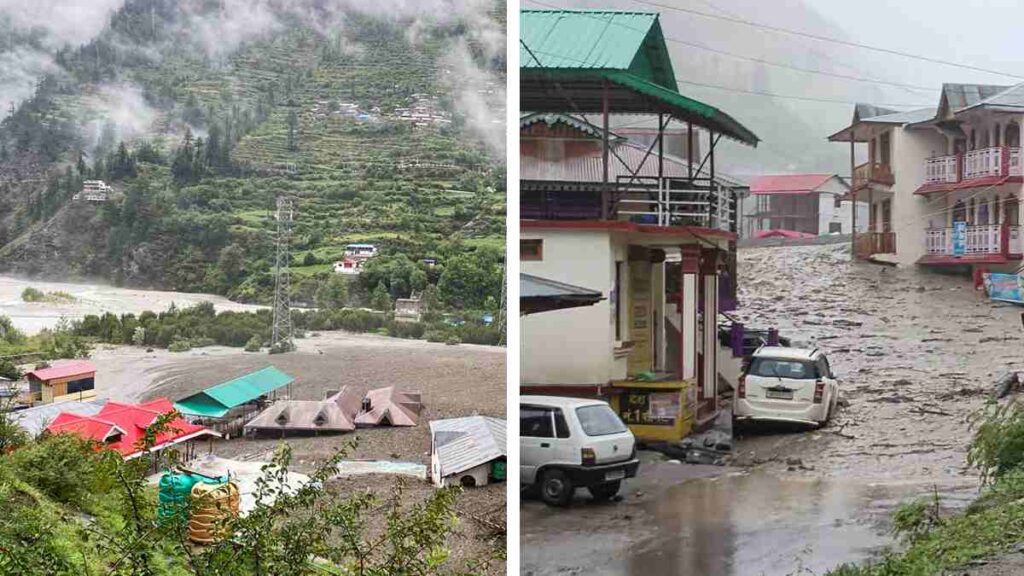 El desastre ocurrió alrededor de las 13:30 horas, cuando una crecida del río Kheerganga arrastró viviendas, hoteles y comercios, bloqueando parcialmente el curso del río Bhagirathi.