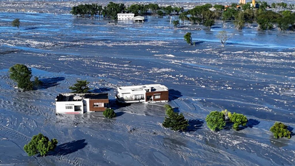 En la red social X, usuarios compartieron videos en donde se observa cómo la fuerza del agua arrastra por varios metros autos que flotan en la corriente. También se observan casas cubiertas casi por completo por el nivel del agua.