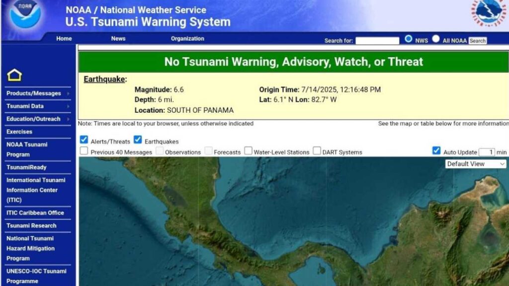 El Servicio Meteorológico Nacional de Estados Unidos confirmó que no existe peligro de tsunami, y descartó la necesidad de activar protocolos de evacuación o alerta costera.