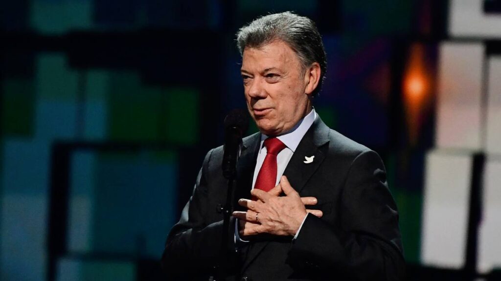 El expresidente colombiano recibió la máxima distinción por haber contribuido a poner fin a medio siglo de guerra interna en Colombia.
