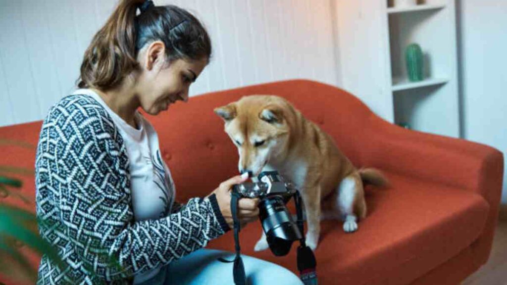 - El can, de raza Pomerania, “apachurra” el botón de “grabar” e inmediatamente suena el temporizador.