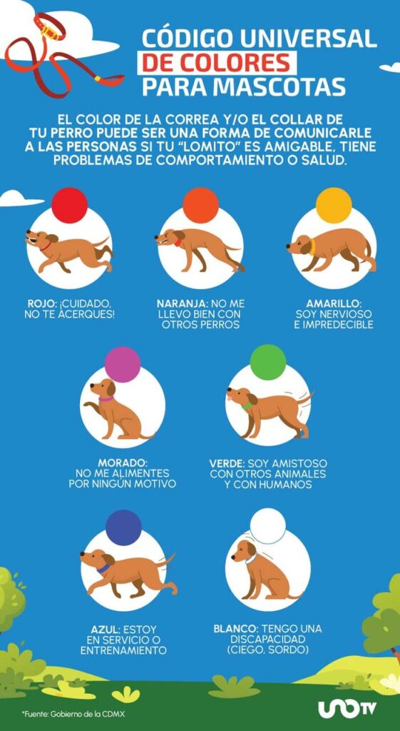 - Con el paso de los años se consolidó el código universal de colores para mascotas, que funciona como una especie de semáforo, solo que este incluye siete tonos diferentes.
