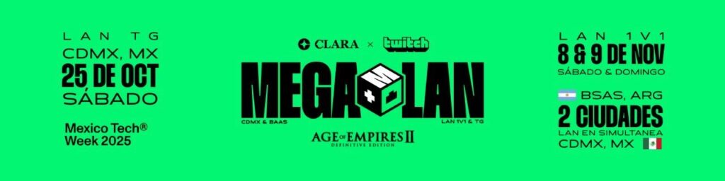 Ciudad de México y Buenos Aires serán sede de dos MEGA LAN de Age opf Empires II: Definitive Edition, un evento que une nostalgia, esports y comunidad. Con la conducción de Nacho AOE y Biry, referentes internacionales del juego, los torneos promete convertir a Latinoamérica en el epicentro mundial de la estrategia en tiempo real.