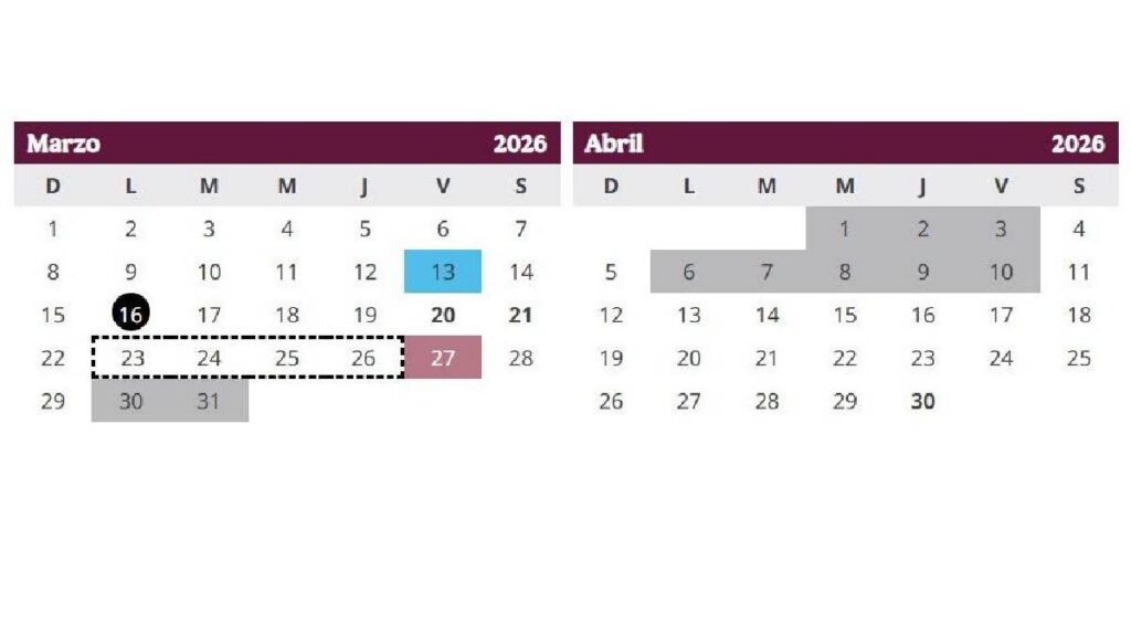 Las vacaciones de Semana Santa 2026 para estudiantes de educación básica en México comenzarán oficialmente el lunes 30 de marzo y terminarán el viernes 10 de abril, de acuerdo con el calendario escolar de la Secretaría de Educación Pública (SEP).