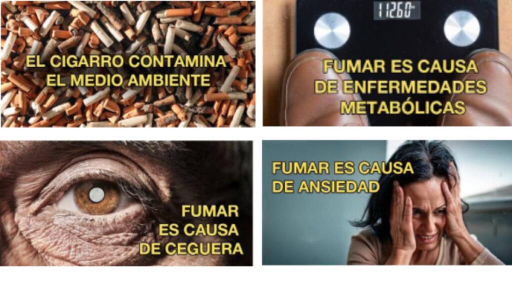 Además, cada imagen debe tener un mensaje sanitario en la cara posterior en donde explique brevemente las causas de la enfermedad por el consumo del tabaco.