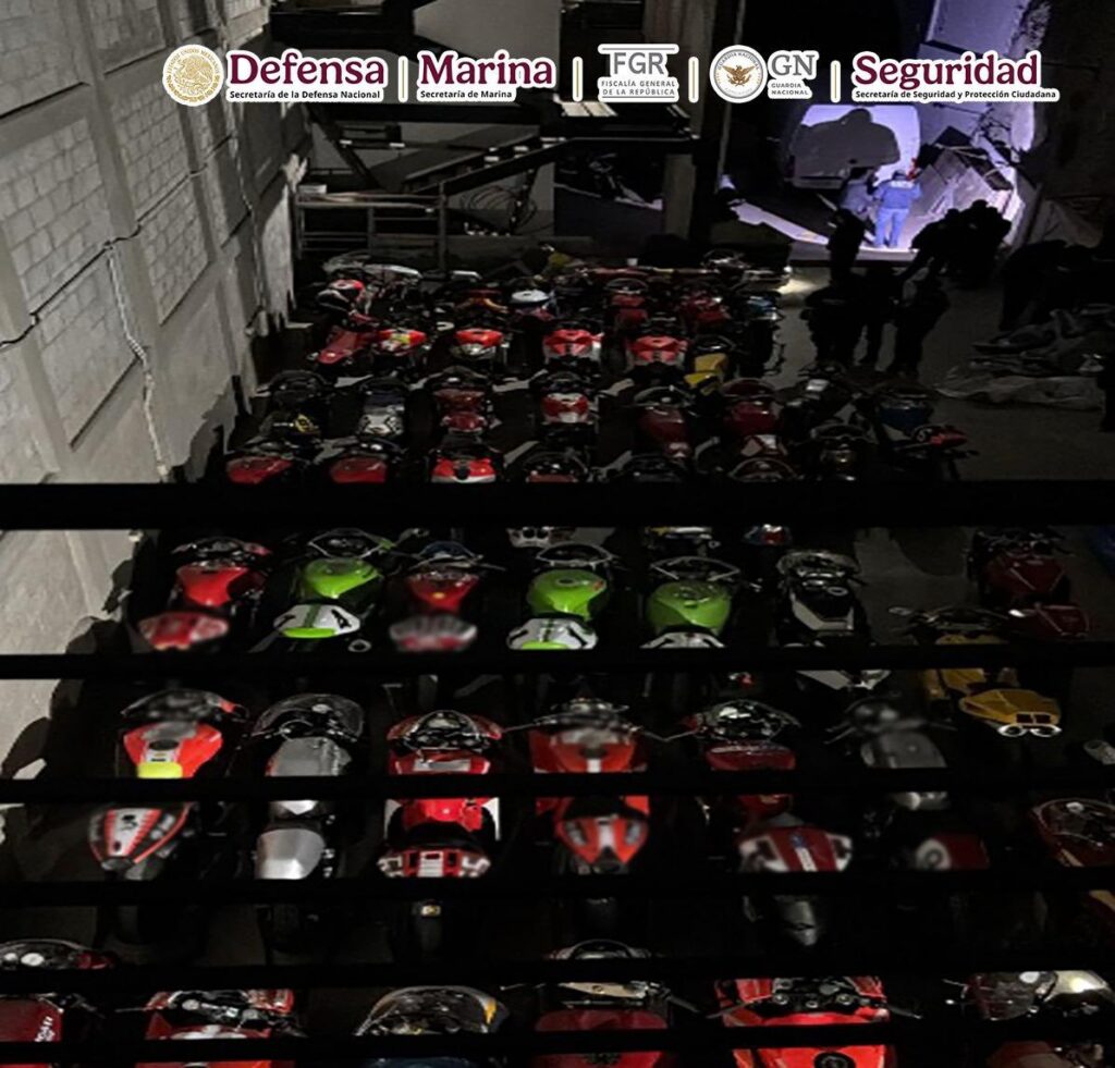 Durante los cateos se decomisaron dosis de metanfetamina y marihuana, 62 motocicletas de alta gama, dos vehículos, obras de arte, dos medallas olímpicas, cartuchos, un cargador y diversa documentación. Los inmuebles quedaron sellados y bajo resguardo de las autoridades.