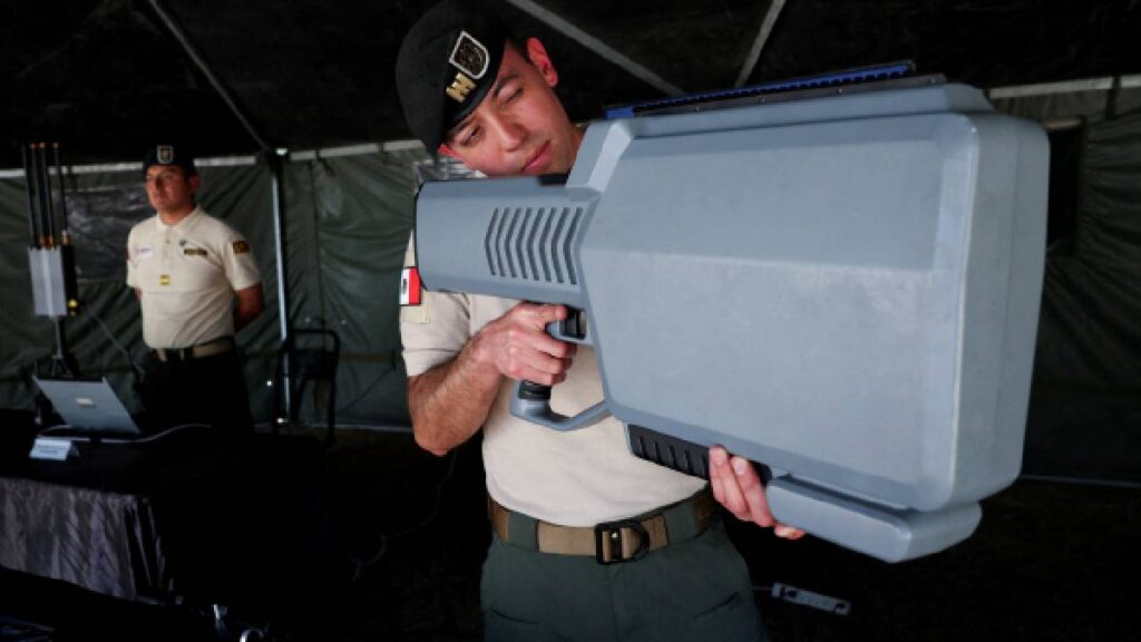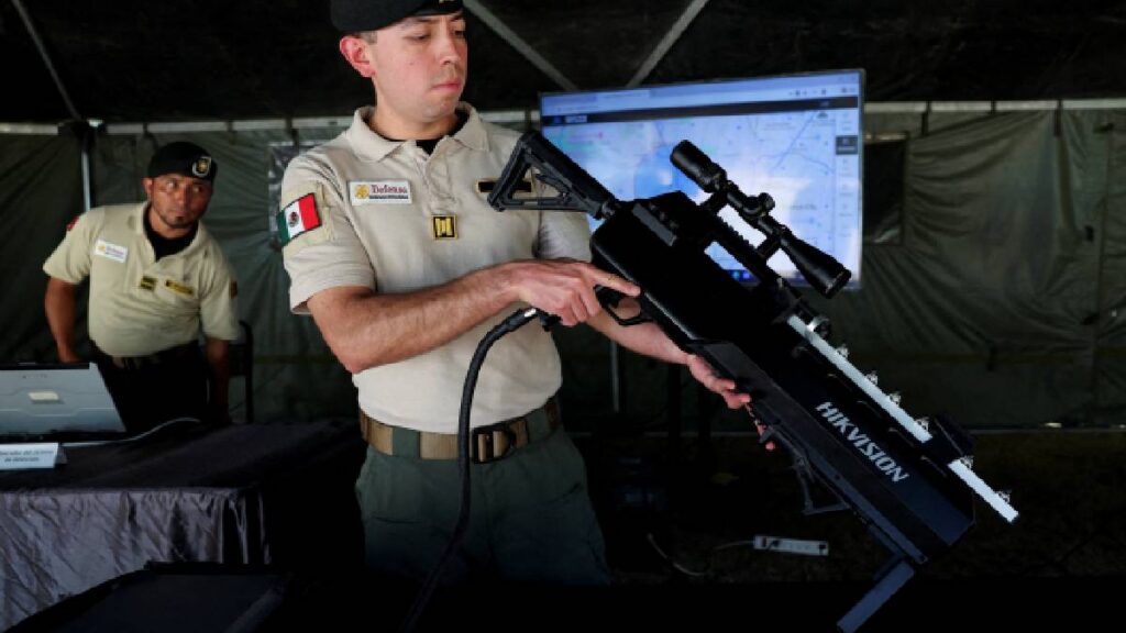 “El sistema, lo que va a hacer es que se actualiza un área de inhibición, detecta un dron que no haya sido registrado, que no esté cumpliendo con las normas que dicta la Agencia Federal de Aviación Civil, y aquí es donde nos pone los datos de los drones”, explicó el coronel Vicente Gamboa, comandante del GRE, en entrevista con Uno TV.