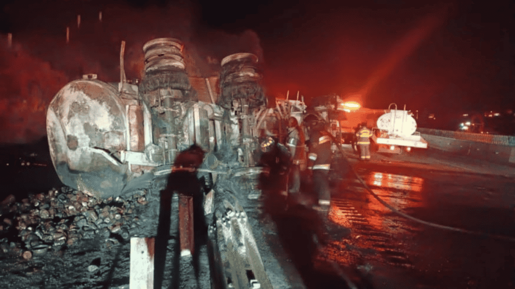 Alrededor de las 19 horas, explotó una pipa de combustible en la autopista México-Puebla, luego de que se quedara sin frenos, para posteriormente estrellarse en esta zona del Estado de México.